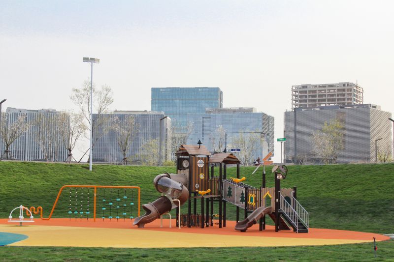 满眼绿意感受到春天气息,石径通向乐园快乐之地,树屋滑梯与游乐设备散落在绿地中央,充满自然元素树屋滑梯玩乐多样,多种滑梯与河南爬网组合,让儿童感受攀爬和滑落的乐趣。绳网让玩乐多一份挑战与探索,益智小件让可爱脑袋活力运转。 乐园里散布多种游乐设备。环形河南秋千针对不同年龄段人员设置不同类型座椅,兼顾安全与乐趣。荡漾的秋千荡起儿时美好回忆,与孩子一起感受童年快乐。喂~声音在管道里奇妙传送,春日里秘密在悄悄传递。顺着绳网向上攀爬,拓展运动一番,活力蓄能。摇摇车摇呀摇,好不惬意,抬眼环绕的绿意草地,好似骑乘欢快小马在草原奔跑。蜻蜓驻足、星辰散落,河南跷跷板起落之间,与自然亲密接触。转盘转动,体验旋转奇妙感觉紧握转杆,旋转不止,世界紧随你我转动。一步一花,平衡感在步步提升,花开朵朵通向美好远方。乐园一旁超大白色梦幻沙池,触感细腻,激发儿童创造力,释放活力。 休闲座椅休憩一番,看着玩闹孩子们,感受希望与活力。匆忙的大人们也会停下脚步,来乐园里重拾起童真的快乐。宽阔场地肆意玩乐,春光无限,玩乐无限。春意款款,岁月缓缓,留下匆匆脚步来绿意乐园感受春日快乐吧。